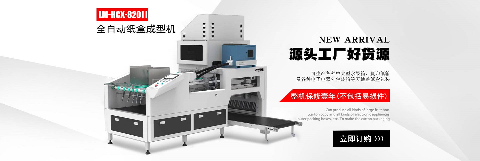 熱門關鍵詞 : 全自動書型盒組裝機 連體糊盒機 天地蓋糊盒機 天地蓋糊盒機 水果箱成型機